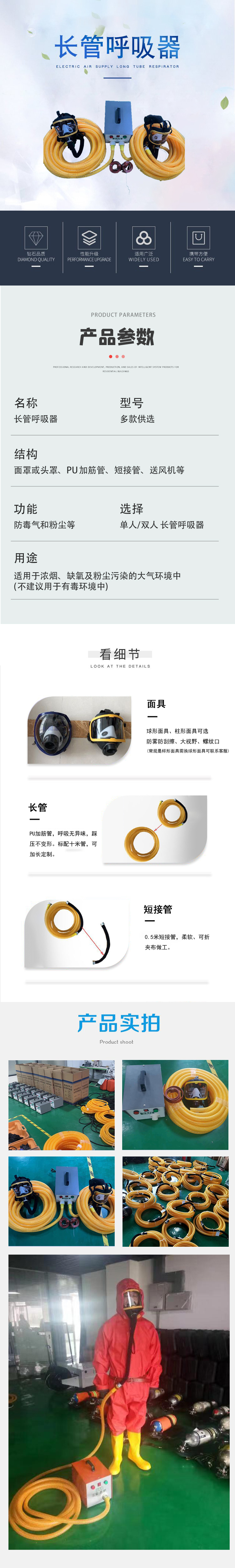 長管空氣呼吸器適用于濃煙、缺氧及粉塵污染的大氣環(huán)境中(不建議用于有劇毒環(huán)境中),根據(jù)采風(fēng)原理分為兩種,電動(dòng)送風(fēng)式長管呼吸器以及自吸式長管呼吸器。 電動(dòng)送風(fēng)式長管呼吸器是由送風(fēng)機(jī)將過濾后的大氣空氣輸送給佩戴者的一種安全防護(hù)裝備。優(yōu)點(diǎn)是首先不受時(shí)間限制不斷的給工作者提供新鮮空氣,其次通過電動(dòng)送風(fēng)機(jī)送風(fēng)使面部始終保持比外界高的壓力,從而使用時(shí)即使出現(xiàn)操作失誤,有害氣體亦無法進(jìn)入面罩,保護(hù)操作人員呼吸安全。