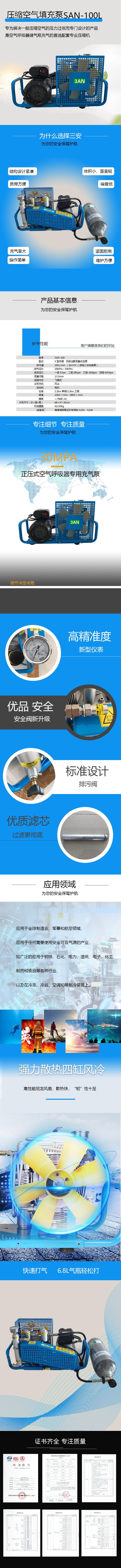 壓縮空氣填充泵是專為解決一般壓縮空氣的壓力過低而專門設(shè)計(jì)的產(chǎn)品,是空氣呼吸器儲(chǔ)氣瓶充氣的首選配套專業(yè)壓縮機(jī)。其具有結(jié)構(gòu)設(shè)計(jì)緊湊、攜帶方便、體積小、重量輕、堅(jiān)固耐用、充氣量大、噪音低、操作簡單、維護(hù)方便等諸多優(yōu)點(diǎn)。所產(chǎn)生的壓縮空氣完全符合人體呼吸的衛(wèi)生標(biāo)準(zhǔn)。